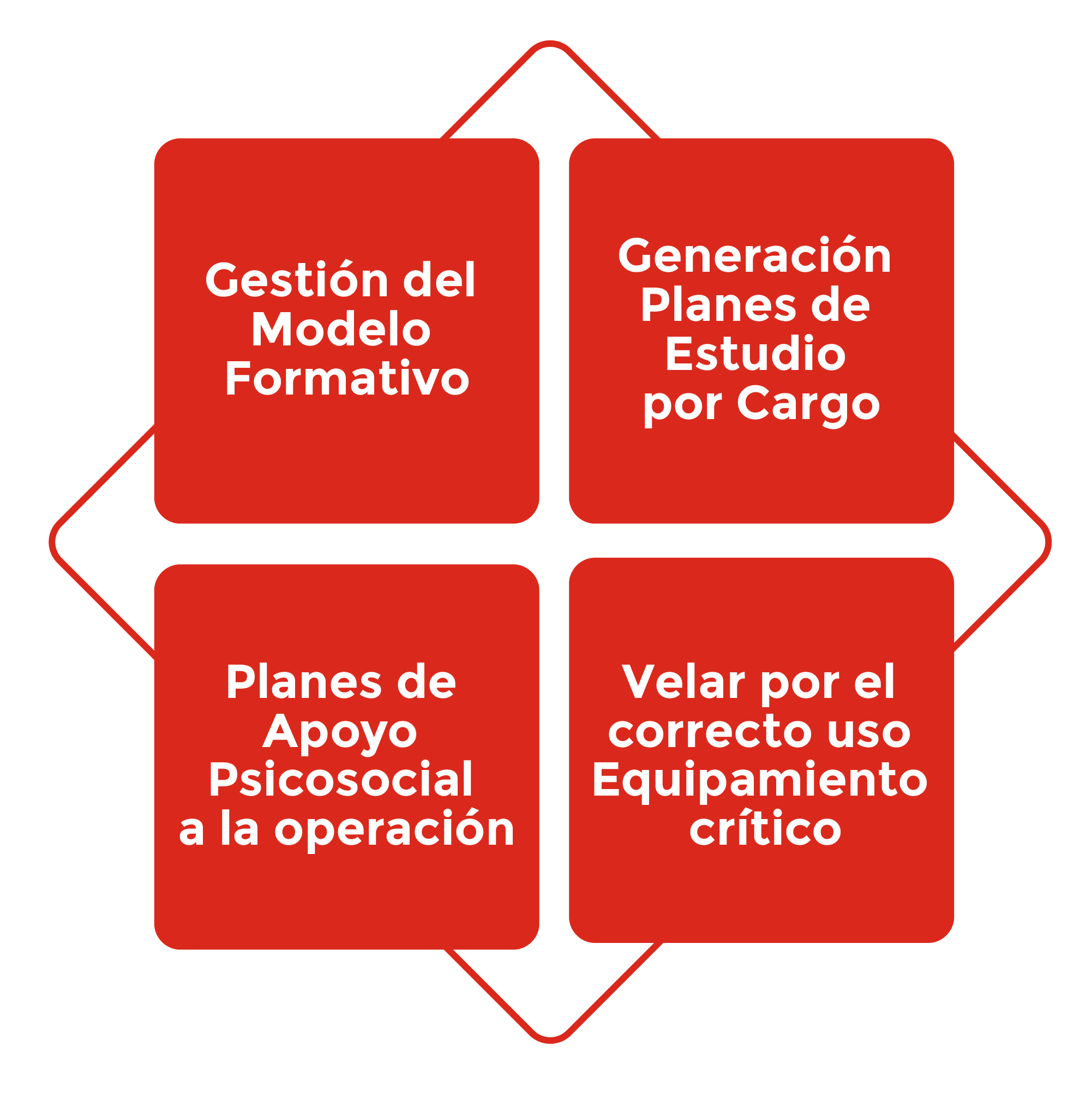 Este lugar tiene como objetivo, entregar los conocimientos técnicos, preventivos y relacionales necesarios para el fortalecimiento de las competencias requeridas para la operación, lo que busca contribuir a un mejor desarrollo de las labores en las instalaciones de la Compañía, reduciendo de esta forma los riesgos de accidentes e índices de accidentabilidad que se pudieran registrar.